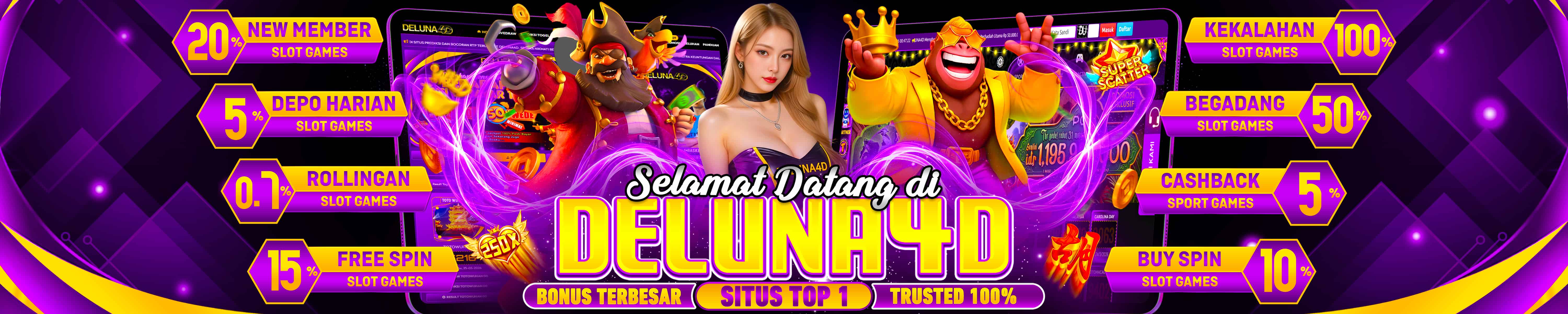 SELAMAT DATANG DI DELUNA4D BANDAR SLOT GACOR , TOGEL , CASINO ONLINE TERPERCAYA DI INDONESIA , NIKMATI EVENT DAN BONUS MENARIK SETIAP HARINYA !!